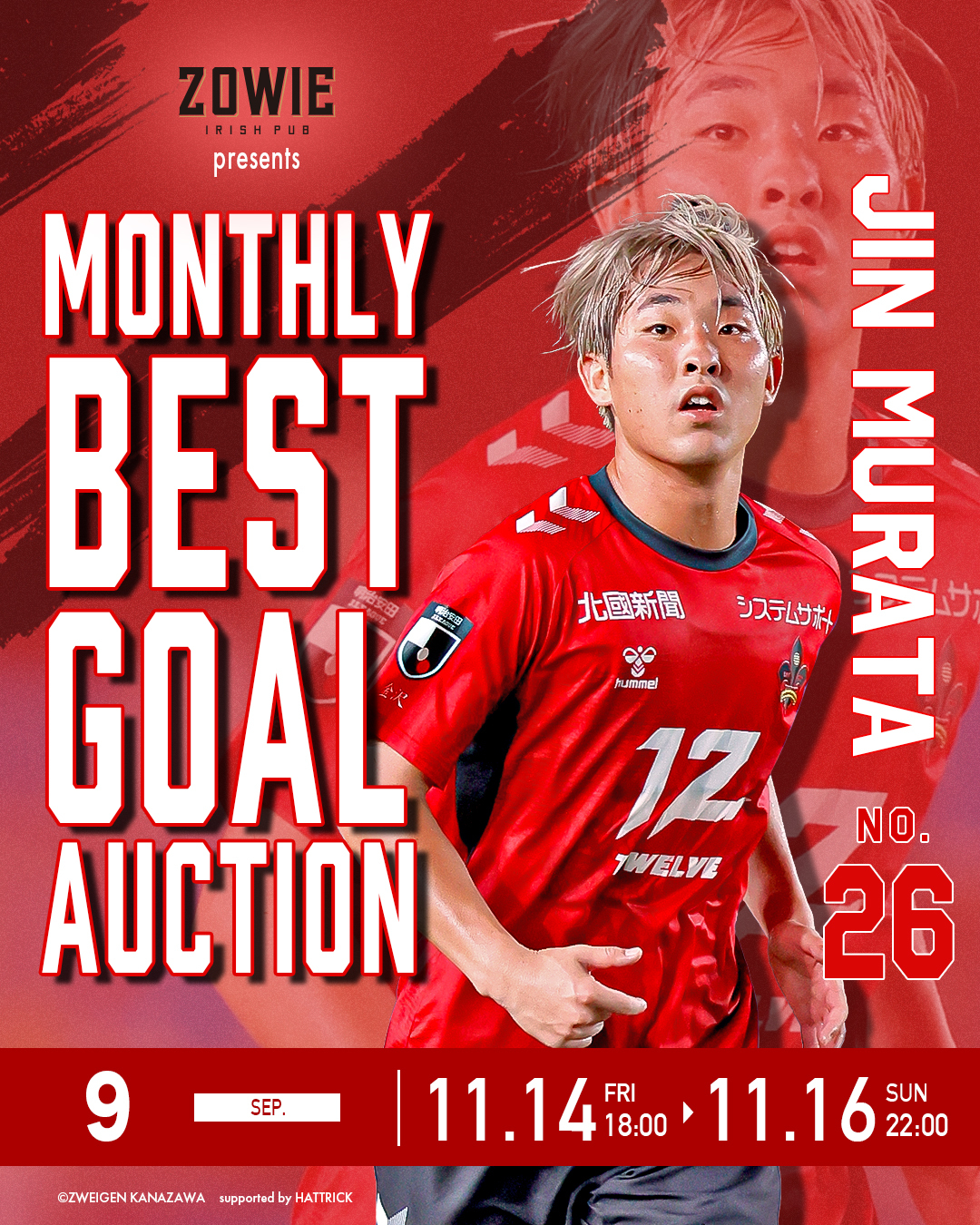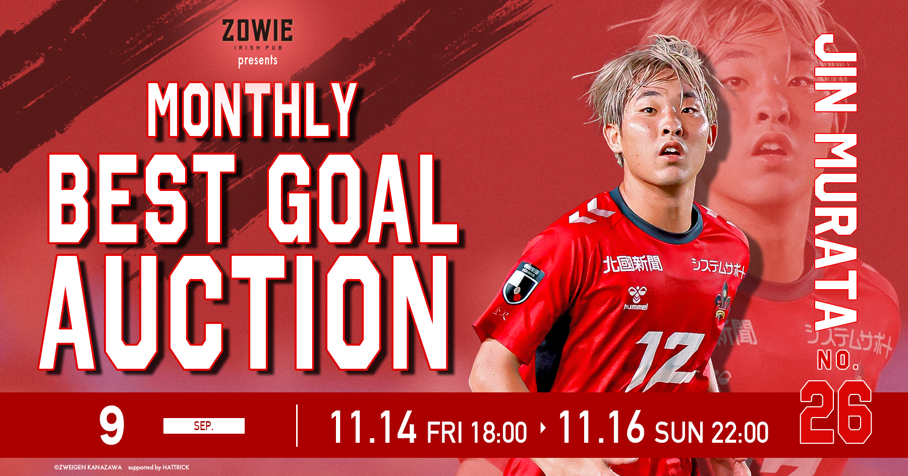 NEW! ZOWIEpresents ツエーゲン金沢9月ベストゴールオークション開始!