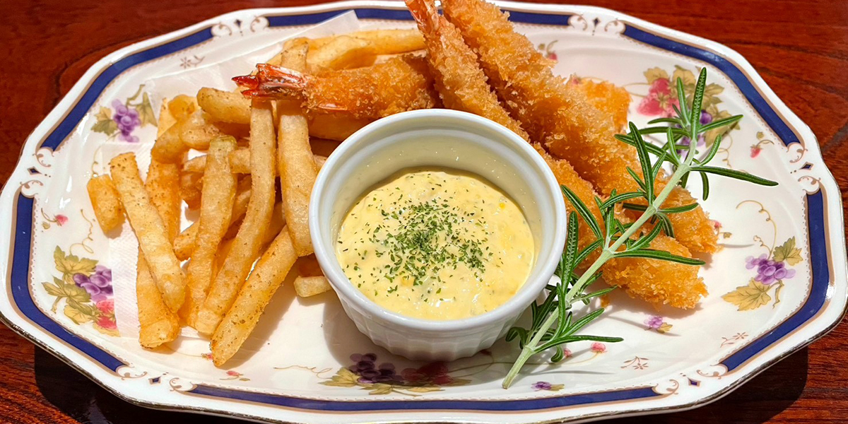 定番人気メニューのフィッシュ&チップスが、シュリンプ&チップスとなって限定登場!!お子様から大人までおいしく召しあがれるよう仕上げました。自家製タルタルソースをたっぷりつけてご賞味ください。