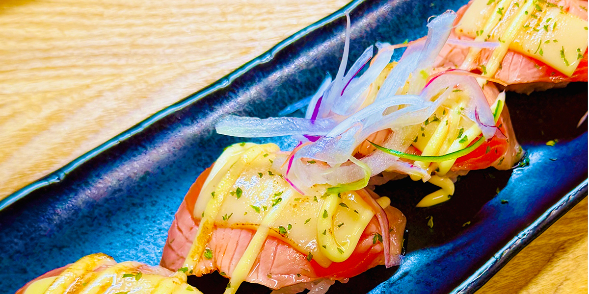 炙りサーモンチーズ寿司5貫 500円