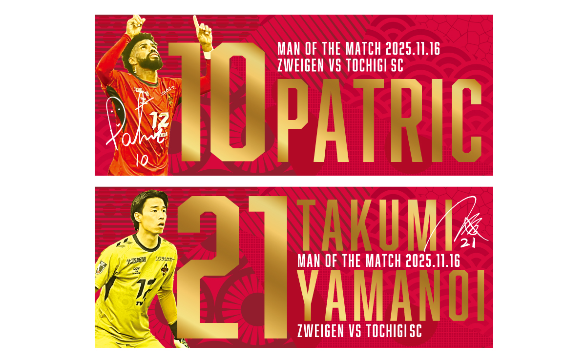 2025シーズン第10回目の勝ちユニのデザインになる選手は、フォワードの背番号10番 パトリック選手・ゴールキーパーの背番号21番 山ノ井 拓己選手に決定!