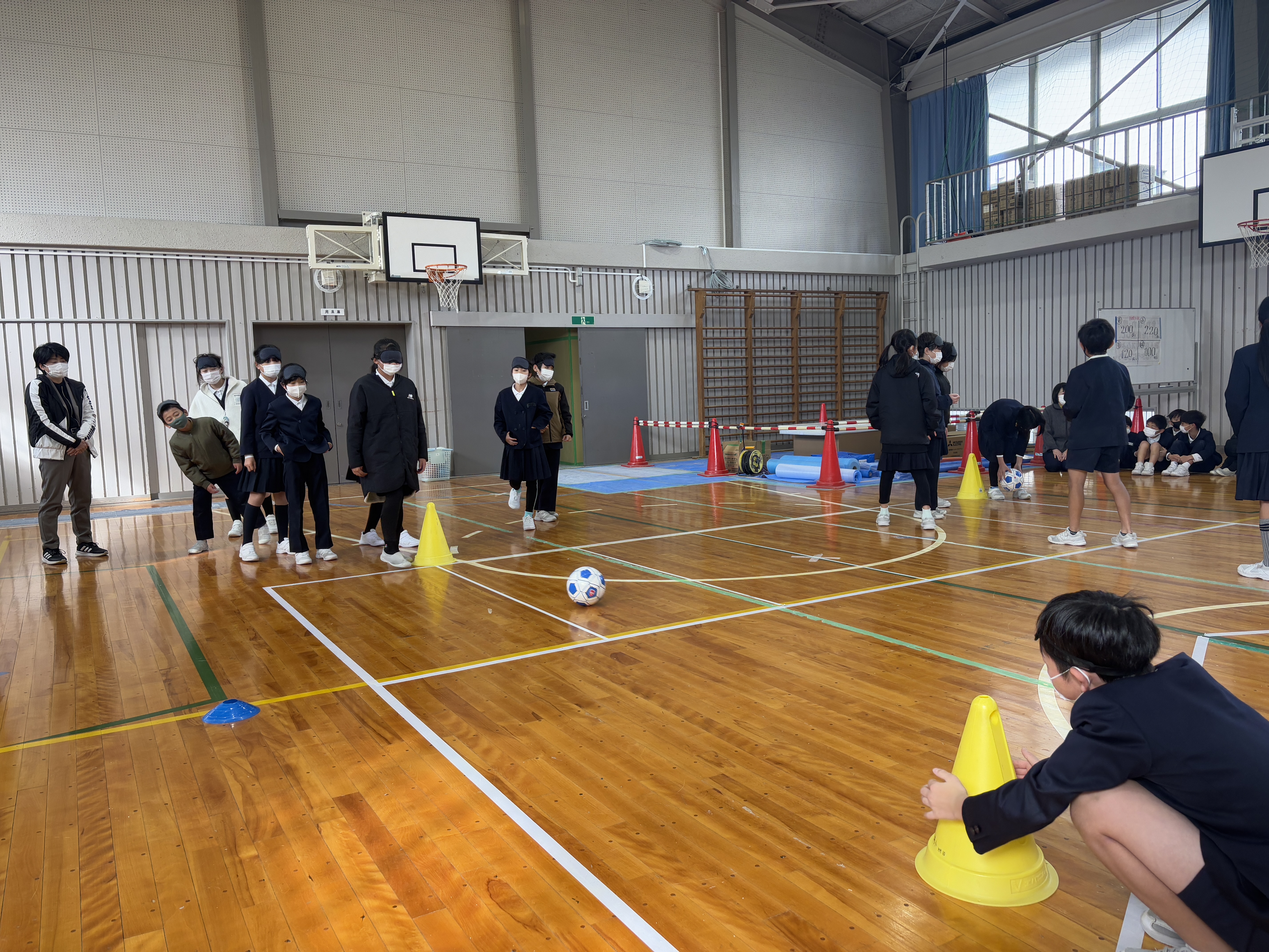 11月26日(水)、ツエーゲン金沢BFCが川北町立中島小学校を訪問し、全校生徒を対象にブラインドサッカー教室を実施しました。