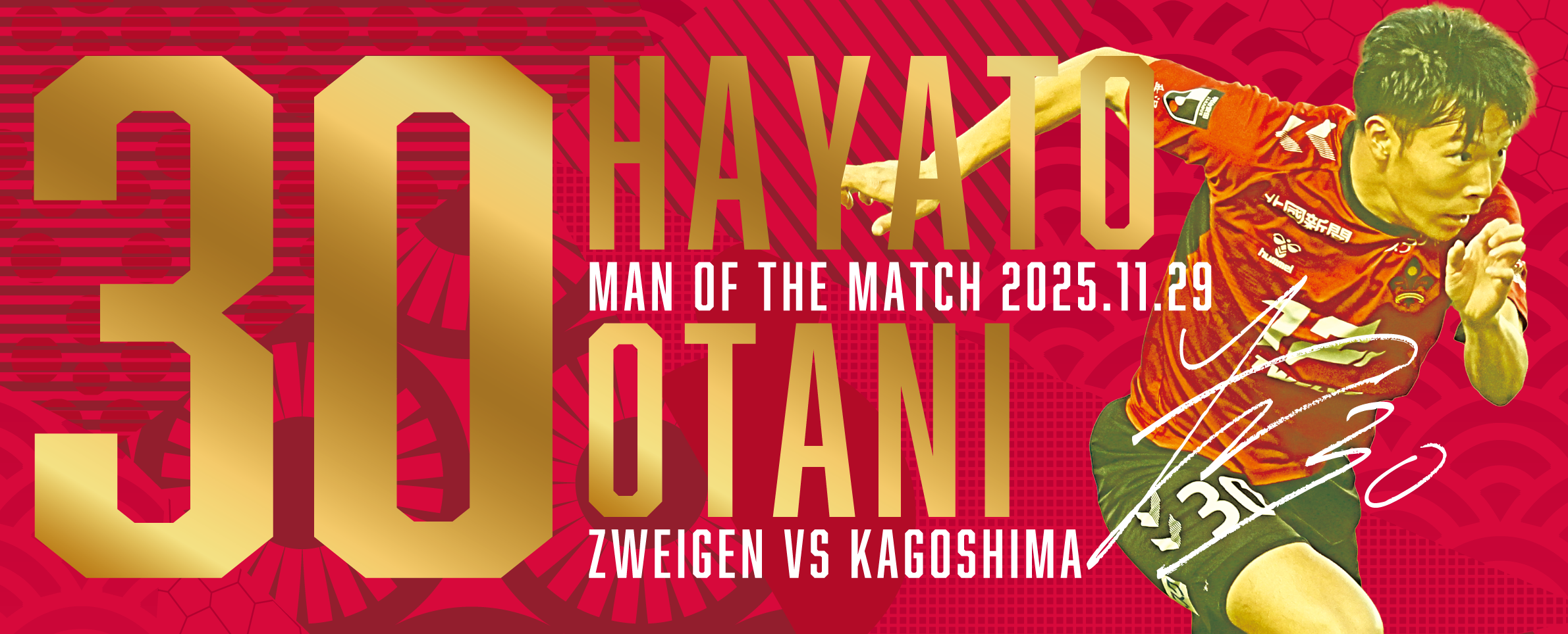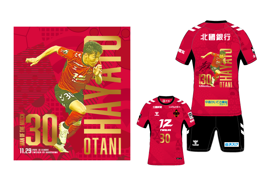 2025シーズン第11回目の勝ちユニのデザインになる選手は、背番号30番 大谷駿斗選手・辻田 真輝監督に決定!