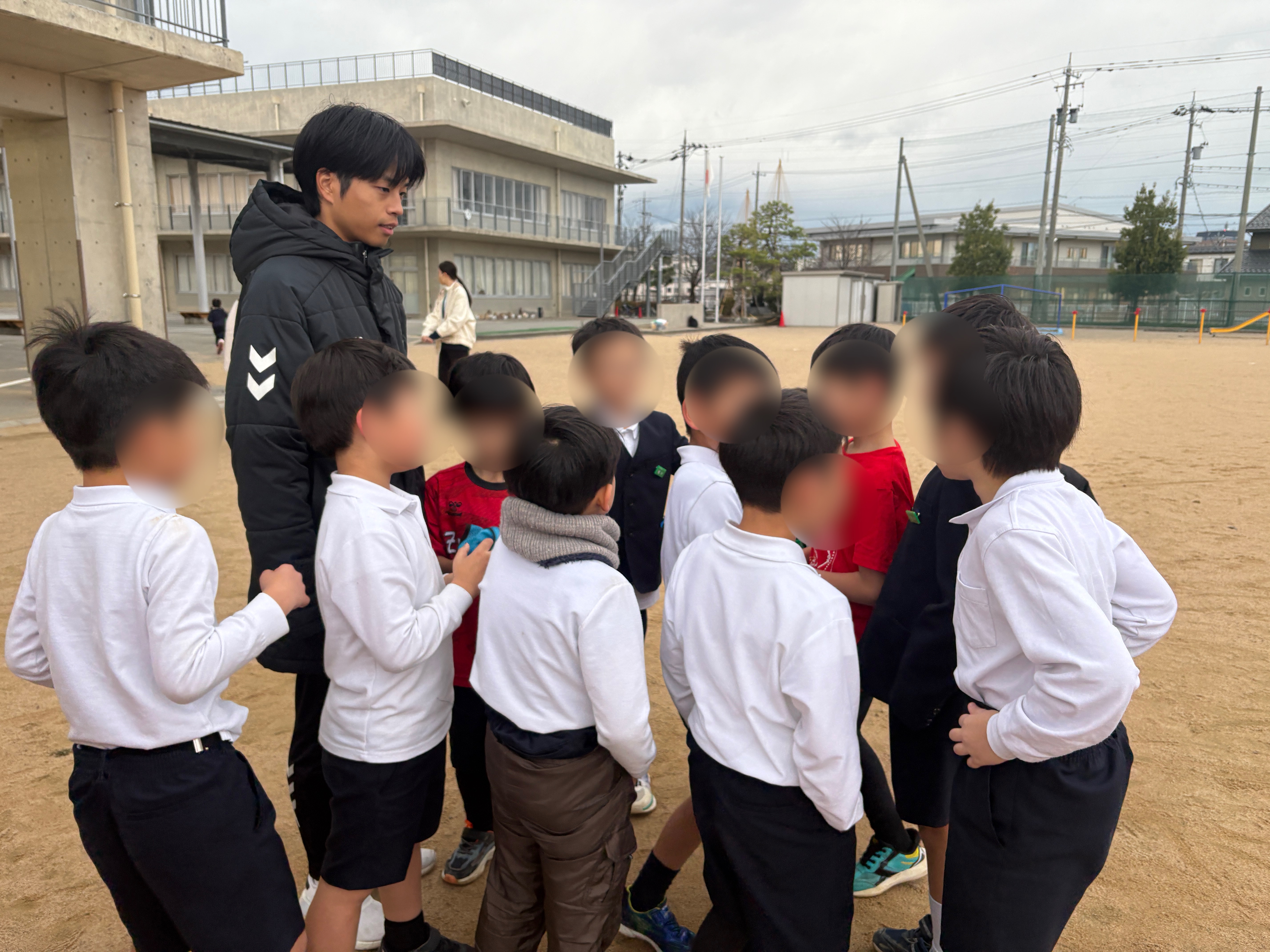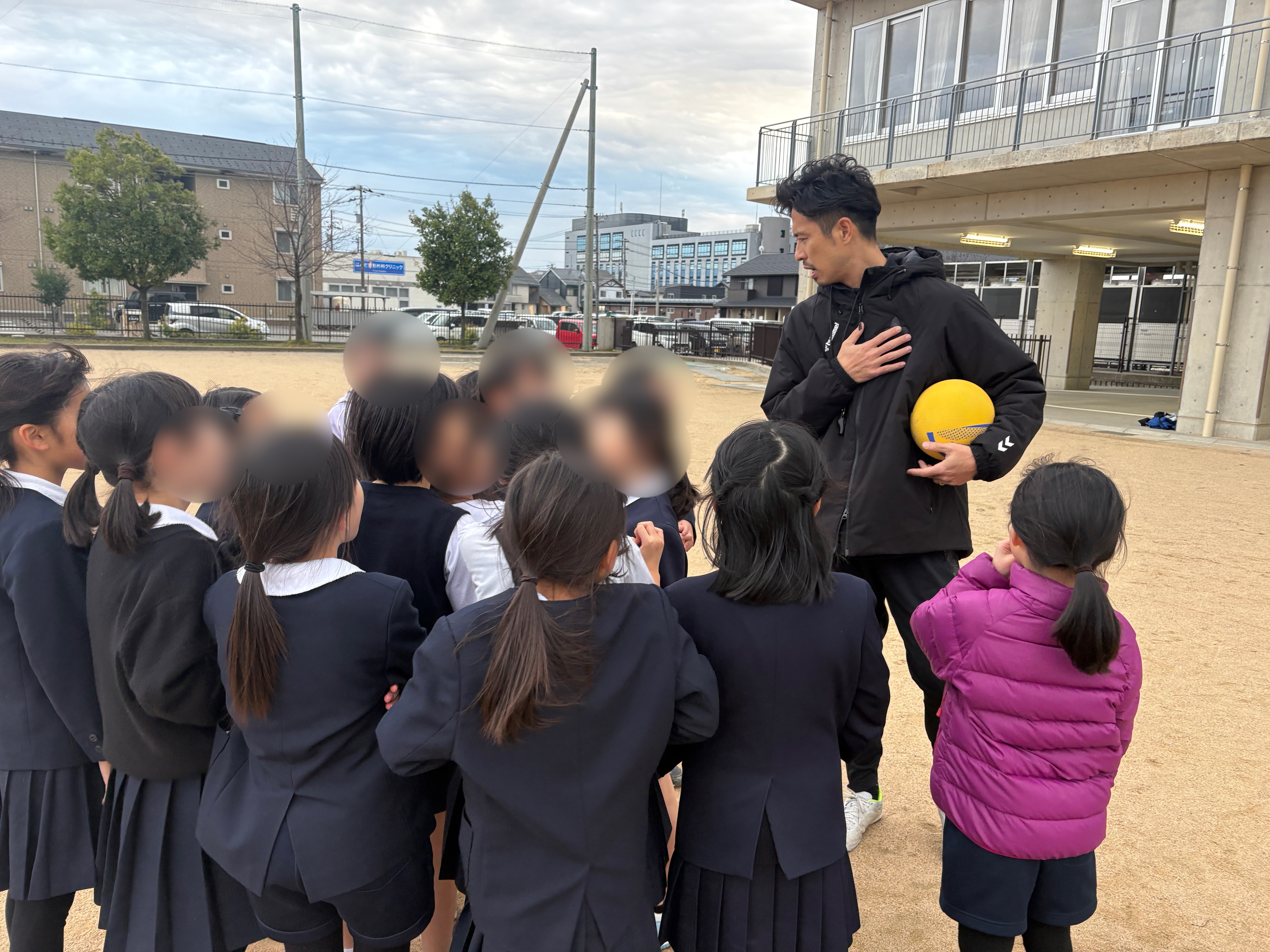 今回は廣井友信クラブキャプテンが参加し、クラブスタッフと一緒に子どもたちと校庭で遊びました。