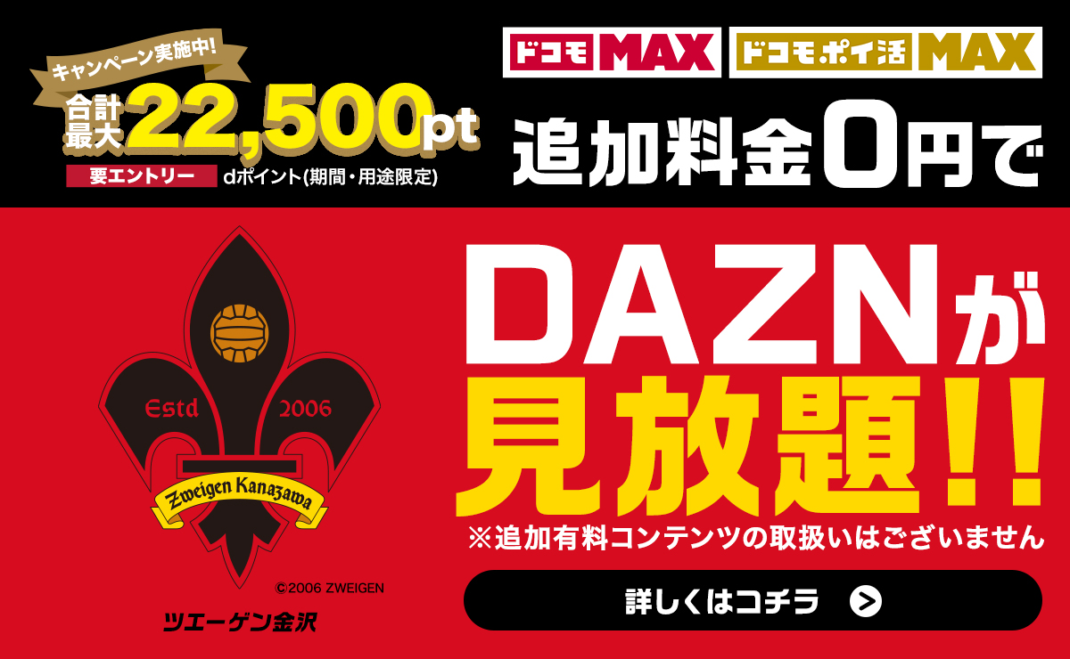 このたび、ツエーゲン金沢は、株式会社NTTドコモとの協業により、「ドコモ MAX」「ドコモ ポイ活 MAX」ご契約者様を対象としたキャンペーンを実施いたします。