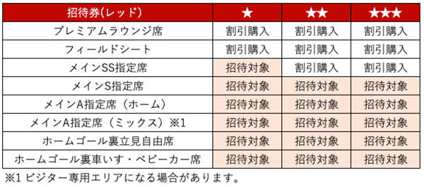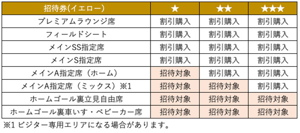 以下の通り、招待券の取り扱い席種などををお知らせいたします。