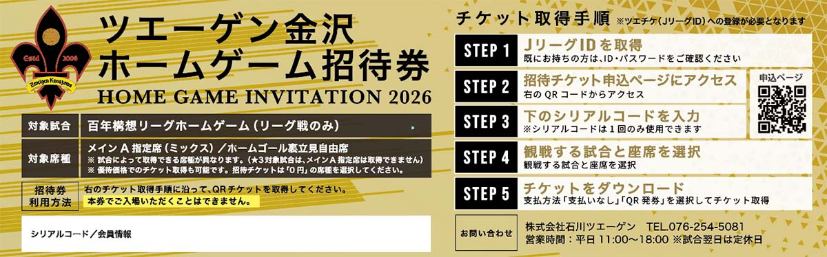 2026年の「明治安田百年構想リーグ」期間中は、金沢ゴーゴーカレースタジアムの復旧工事のため、バックスタンドエリアのチケット販売を停止します。