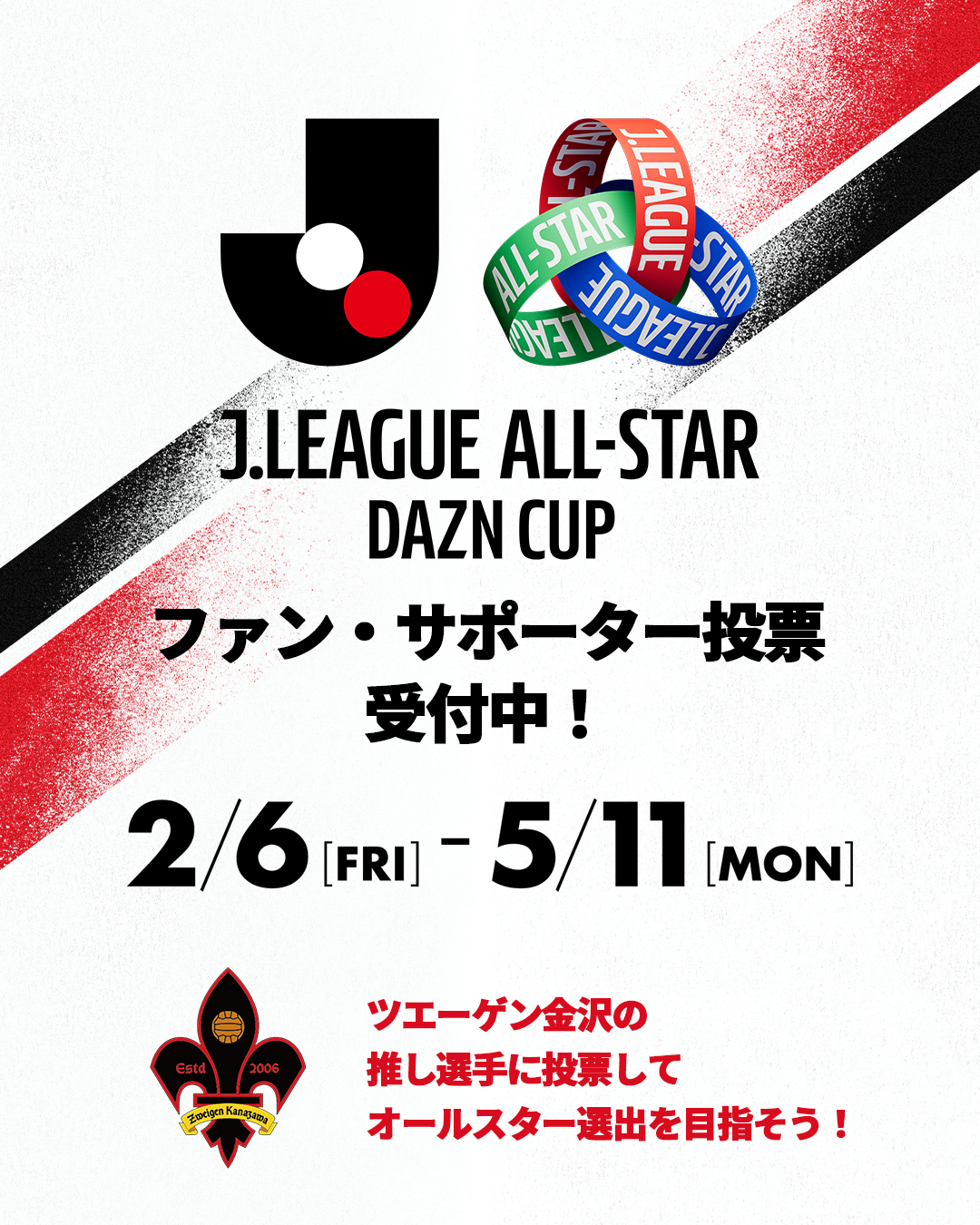 Jリーグは、6月13日(土)にMUFGスタジアム(国立競技場)で開催する「JリーグオールスターDAZNカップ」に出場する選手および監督を選ぶファン・サポーター投票を、2月6日(金)より開始いたします。