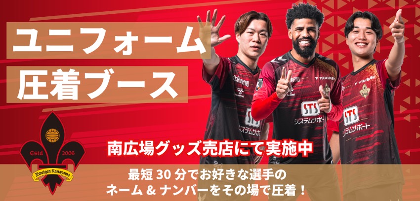 南広場グッズ売店にて、ユニフォームの背番号あとづけサービスを受け付けております!