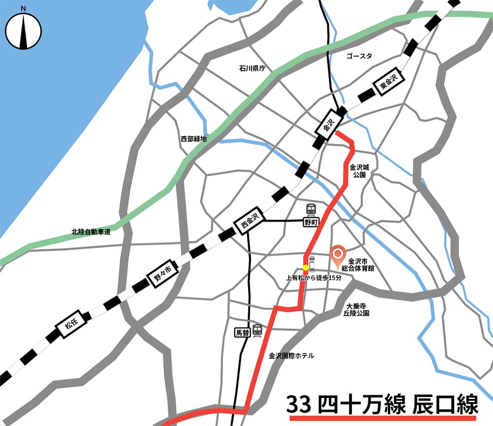 ・金沢駅、辰口方面から上有松[33]四十万線 時刻表はこちら[33]辰口線 時刻表はこちら