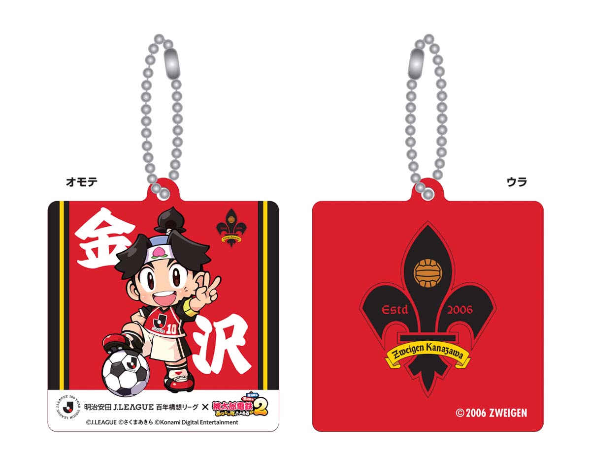 この度、「桃太郎電鉄2 ~あなたの町も きっとある~」と「Jリーグ」のコラボに伴いまして、5月6日(水祝)に開催する明治安田J2・J3百年構想リーグ 第14節 ツエーゲン金沢 vs 愛媛FCにおいて、3つの方法にて、来場者にコラボ限定キーホルダーをプレゼントします。