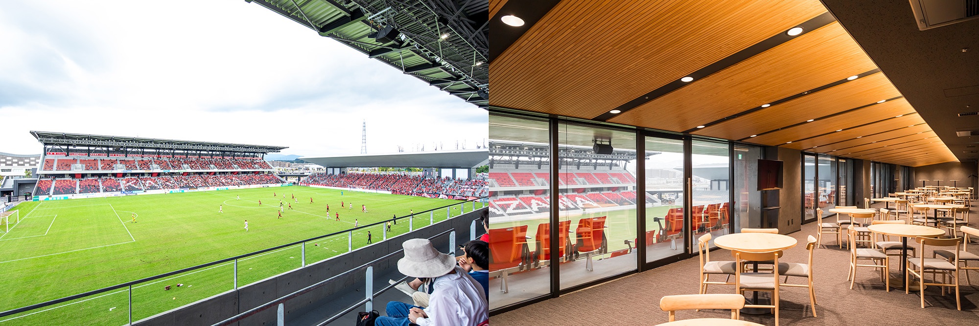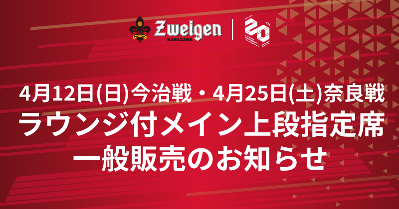 このたび、4月12日(日)今治戦・4月25日(土)奈良戦にて、メインスタンド上段(3階エリア)のビジネスラウンジをご利用いただける「ラウンジ付メイン上段指定席」を一般販売することが決まりましたので、お知らせいたします。