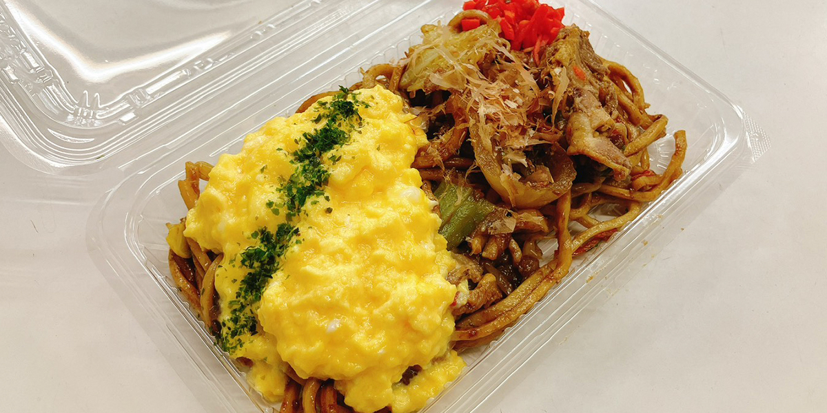 ふわとろたまごの焼きそばです。いつもの焼きそばがまた一段と美味しい!子供から大人まで大満足の組み合わせです。