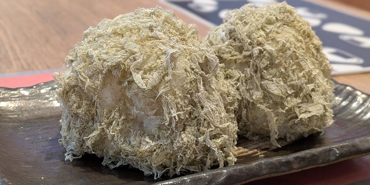 いつもの具材をとろろ昆布巻きのおにぎりにしました。たっぷりふわふわなおにぎり、召し上がれ!