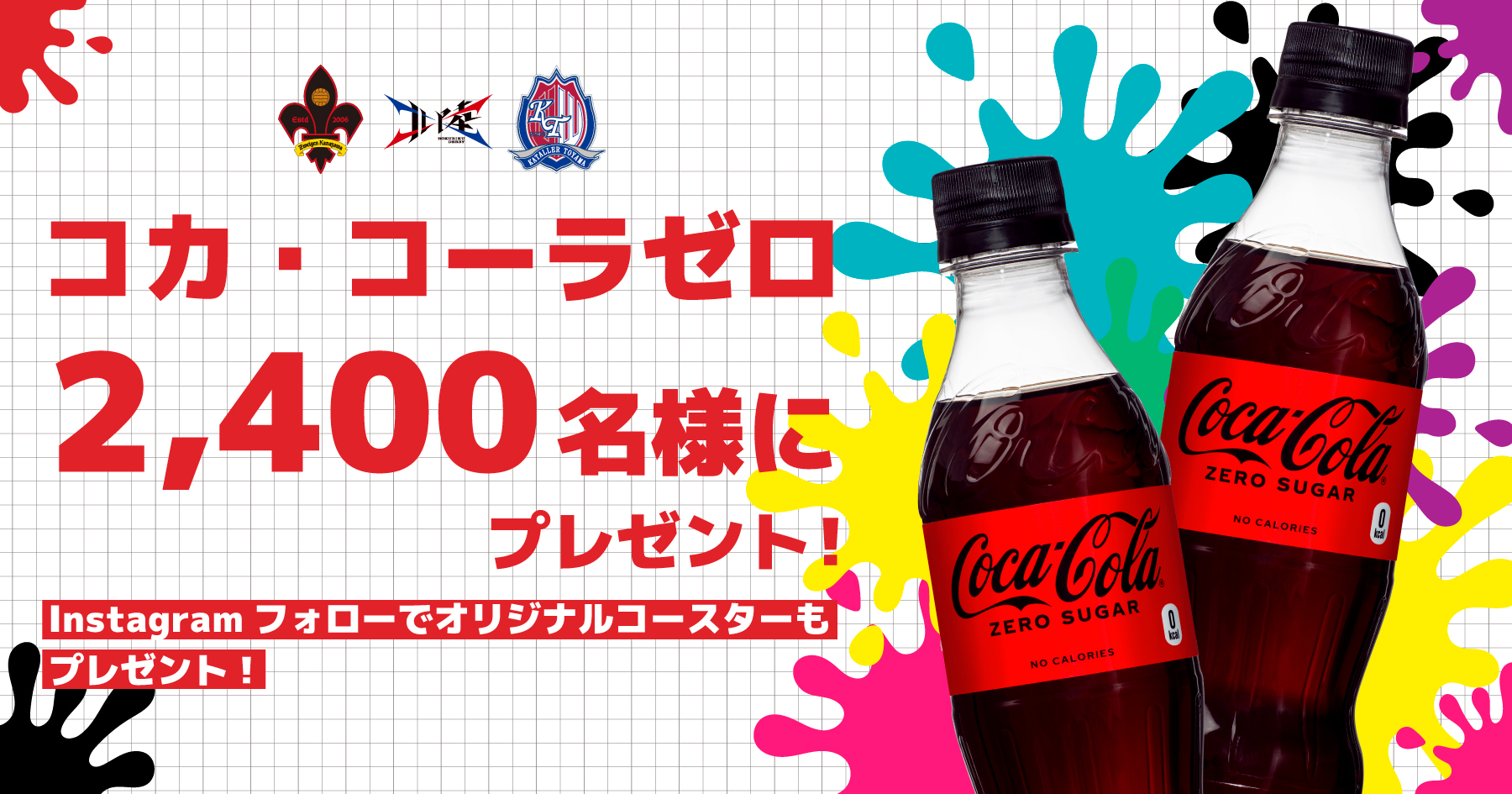 ツエーゲン金沢と北陸コカ・コーラのInstagramをダブルフォローしよう!ブースでフォロー画面をスタッフに提示すると、ツエーゲン金沢×コカ・コーラのオリジナルコースターをその場でプレゼント!