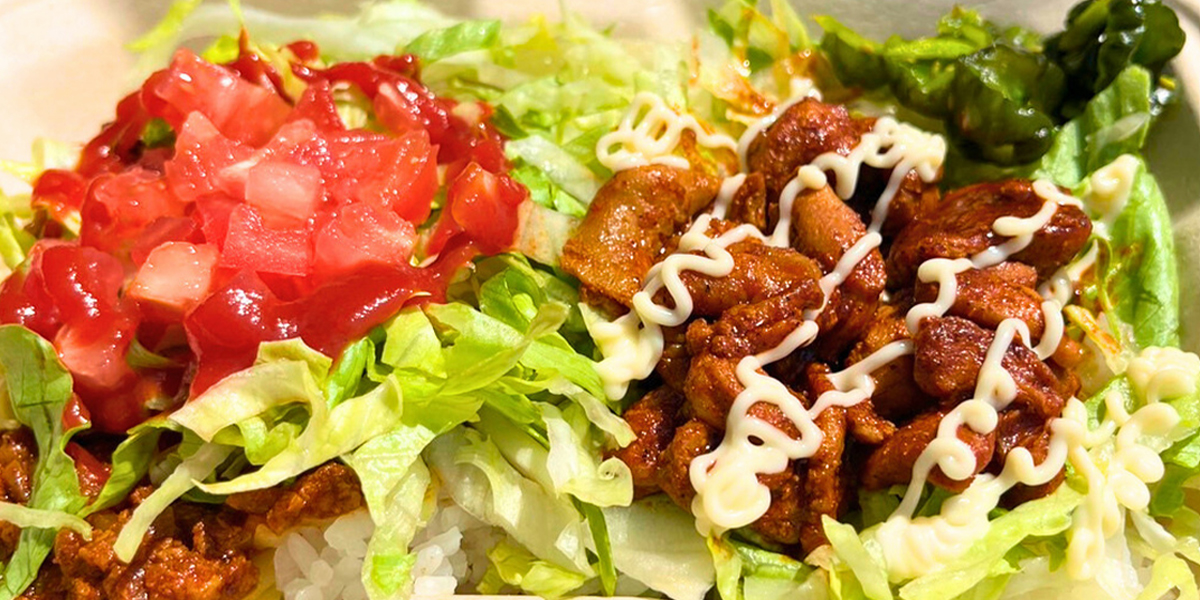 タコライスとスパチキライスが両方楽しめるスペシャル丼!ボリューム満点でシェアにも最適です。