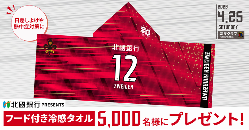 2026.3.6 【4/25(土) 奈良戦】北國銀行コラボ 「フード付き冷感タオル」来場者5,000名様にプレゼント!