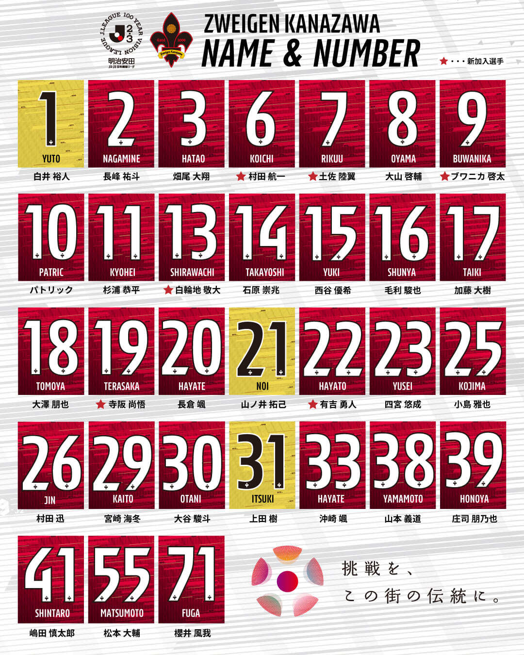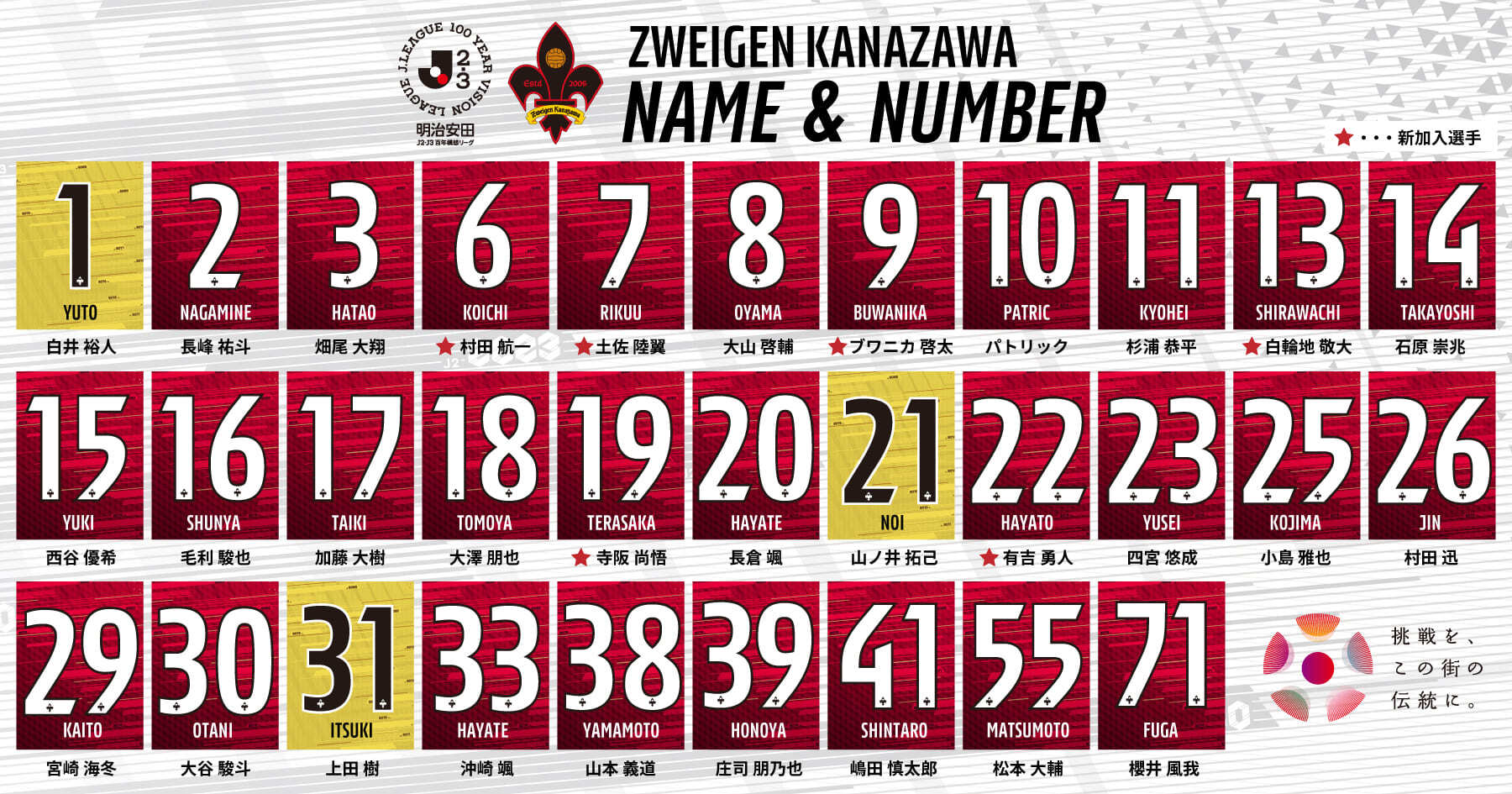 明治安田J2・J3百年構想リーグ | 新体制及び背番号決定のお知らせ