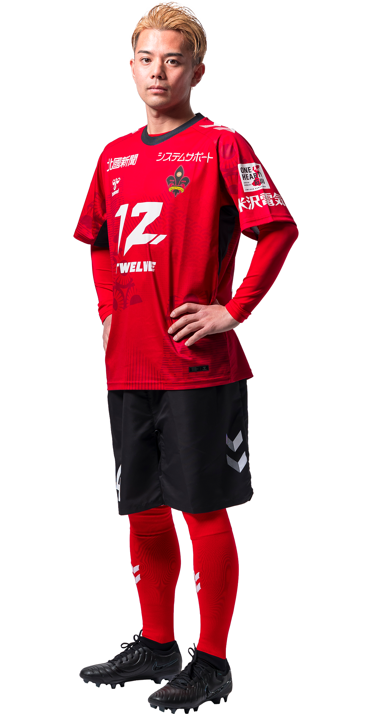 昨年はカード累積を除く37試合に出場し、豊富な運動量で金沢の中盤を支える。