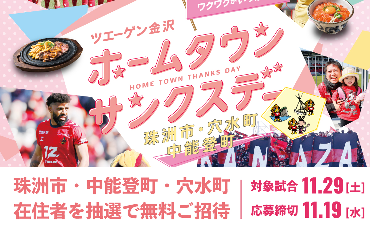 ホームタウンサンクスデーの招待事業として、この試合は珠洲市・中能登町・穴水町を抽選で100組200名様無料ご招待!