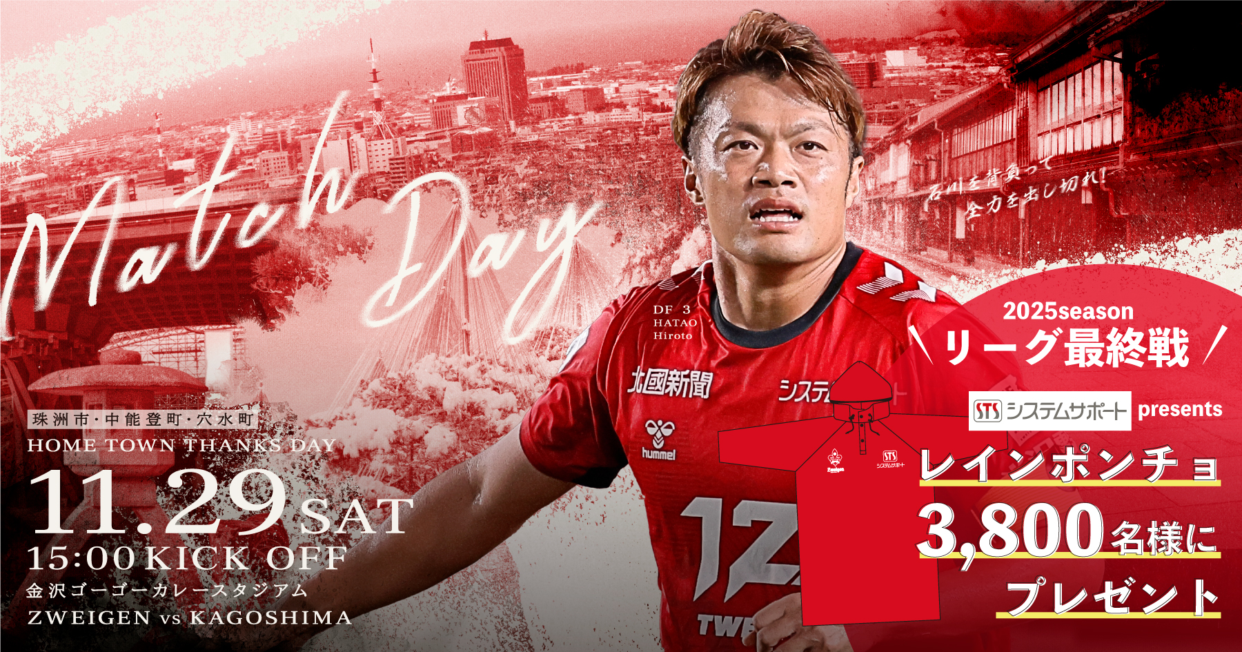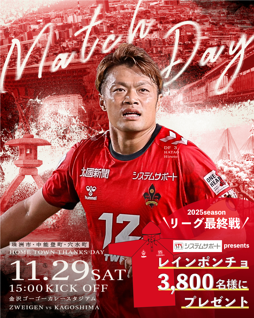 ツエーゲン金沢とオフィシャルパートナー「株式会社システムサポート」がコラボ!来場者先着3,800名様にレインポンチョプレゼント!