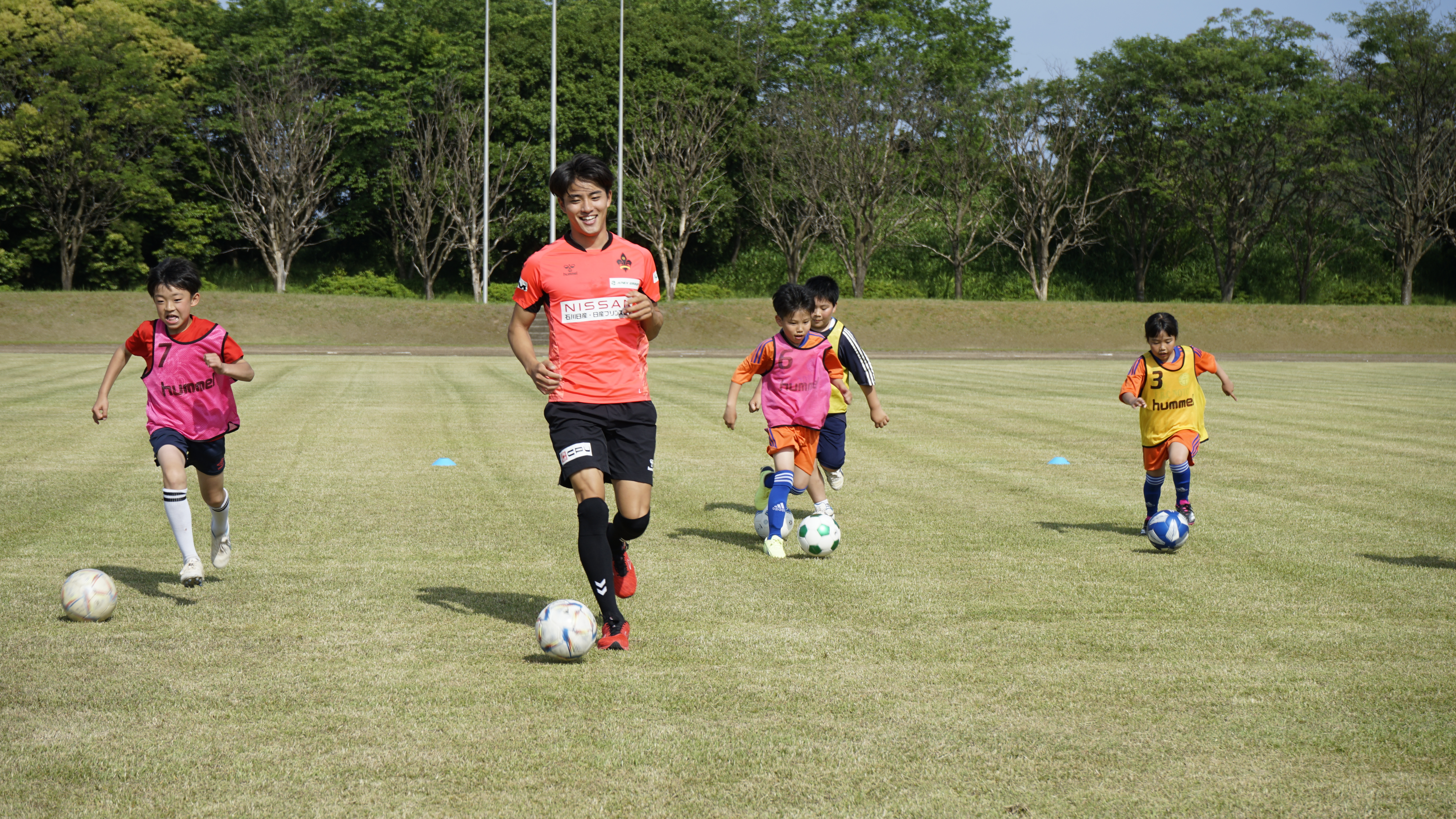 今回は、トップチームから櫻井風我選手とパクジュンソ選手が参加し、廣井友信クラブキャプテンやスクールコーチと一緒にボールを使って能登町の子どもたちとふれあいました。
