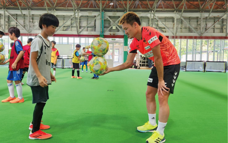 パスの受け方やコミュニケーションの大切さを、子どもたちに伝えました。