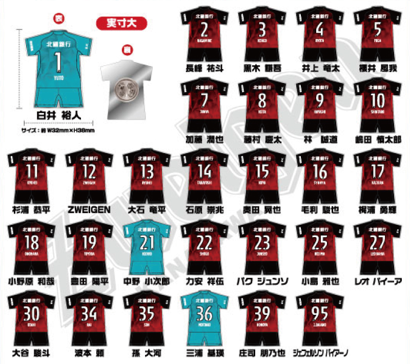 ※製造スケジュールの都合上、「20番加藤 大樹選手」「26番木村 勇大選手」「38番山本 義道選手」は含まれておりません。あらかじめ、ご了承ください。