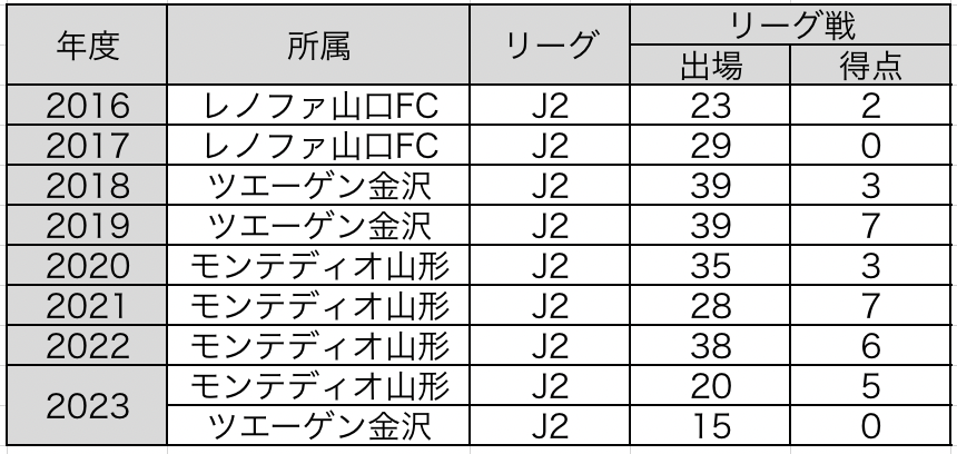 J2リーグ 266試合(33得点)