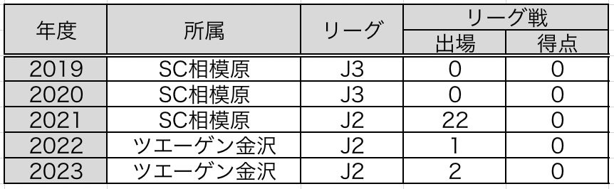 ヘミニス金沢FC - 遊学館高校 - 拓殖大学 - SC相模原 - ツエーゲン金沢