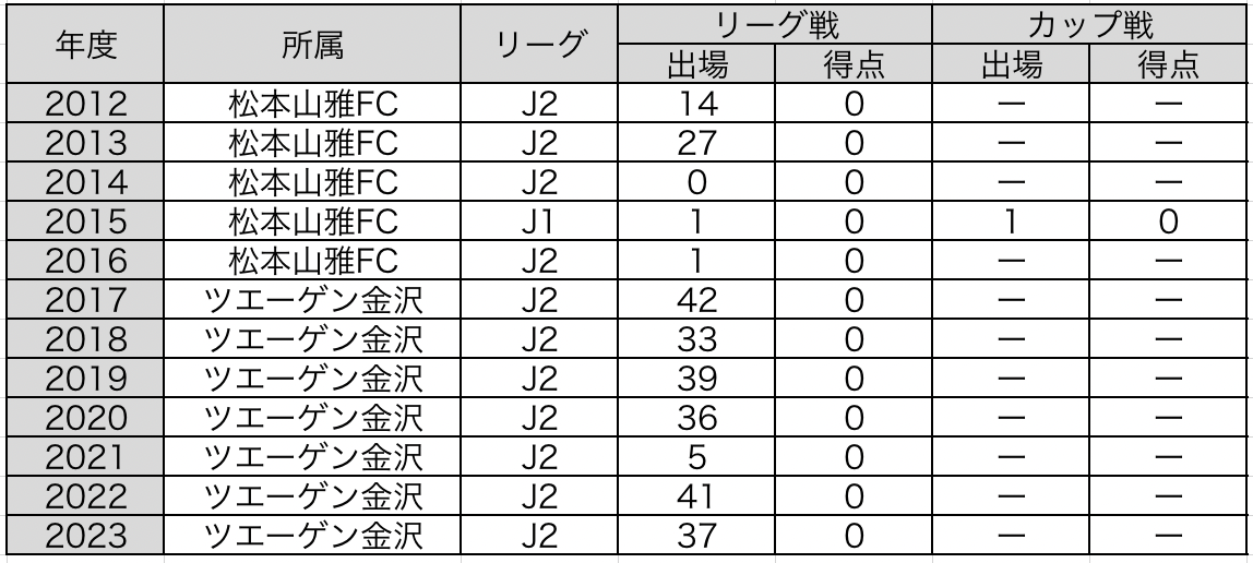 流通経済大付属柏高校 - 流通経済大学 - クラブドラゴンズ - 流通経済大学 - 流通経済大FC - 流通経済大学 - 松本山雅FC - ツエーゲン金沢