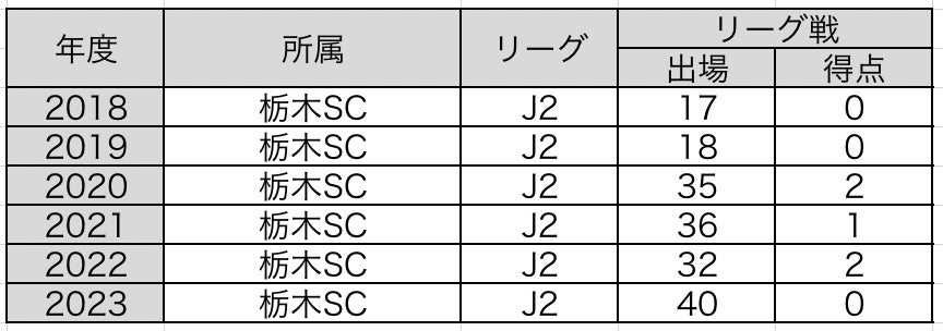 益子SC ストラーダ - JEF 宇都宮 - 鹿島学園高校 - 仙台大学 - ヒラル・マロク・ベルグハイム(ドイツ) - TuS エルンテブリュック(ドイツ) - 栃木SC