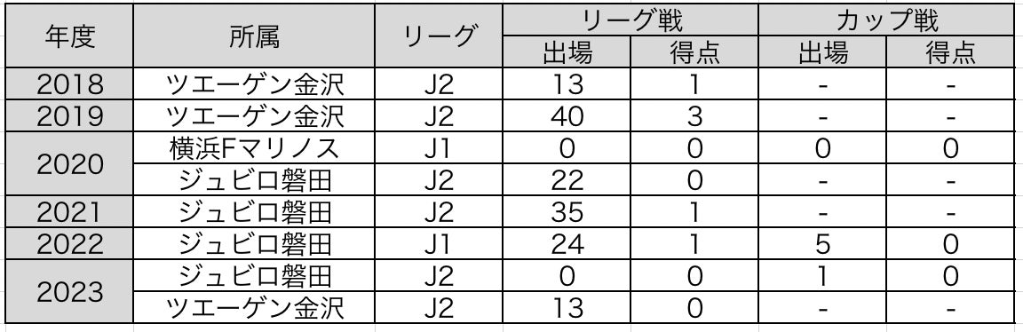 作陽高校 - びわこ成蹊スポーツ大学 - ツエーゲン金沢 - 横浜F・マリノス - ジュビロ磐田 - ツエーゲン金沢(期限付き)