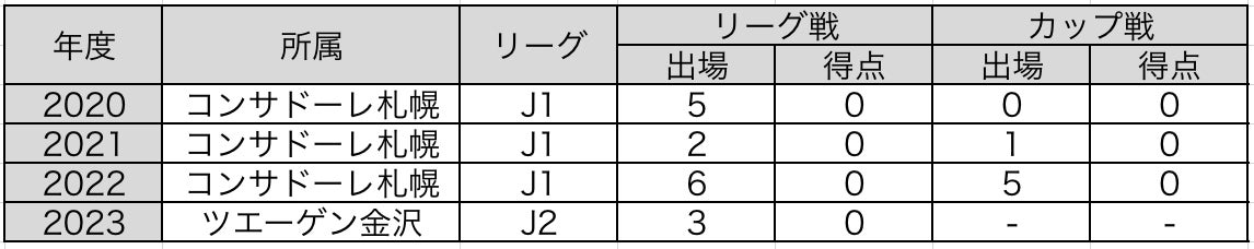徳島ヴォルティスU-15 - 徳島ヴォルティスU-18 - 法政大学 - 北海道コンサドーレ札幌 - ツエーゲン金沢(期限付き)