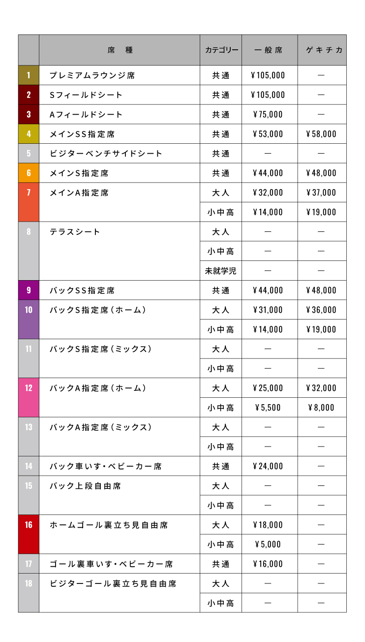 指定席の場合、来季も同じお席を優先的に確保いたします。