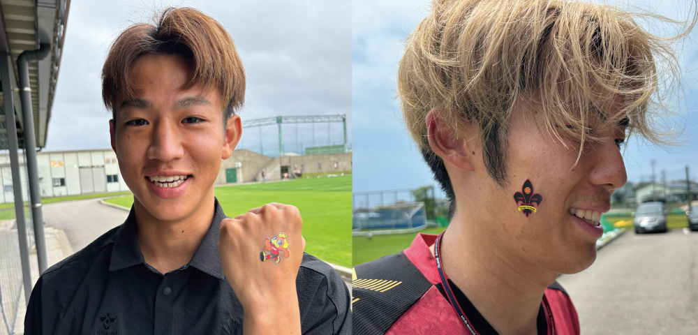 塚元選手は「頬」にペタッと!梶浦選手は「手の甲」がおすすめとのこと!