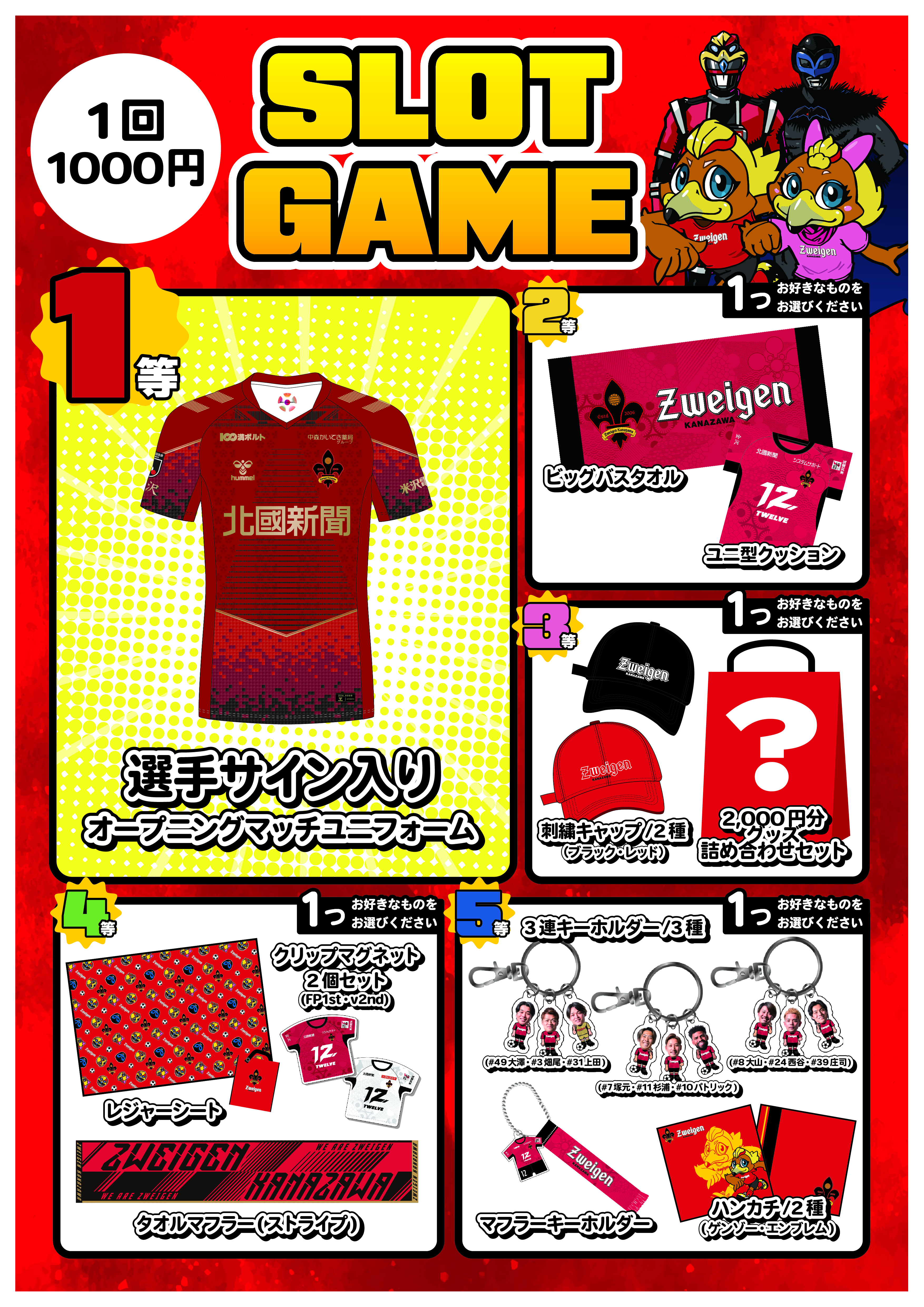 そして今節限定で「1,000円スロット」ブースが登場。ハズレなしの豪華景品が当たるチャンスをお見逃しなく!