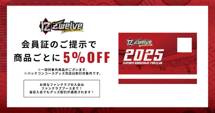 ファンクラブ会員証のご提示で、商品ごとに5%OFFさせていただきます。(一部対象外商品もございます。)