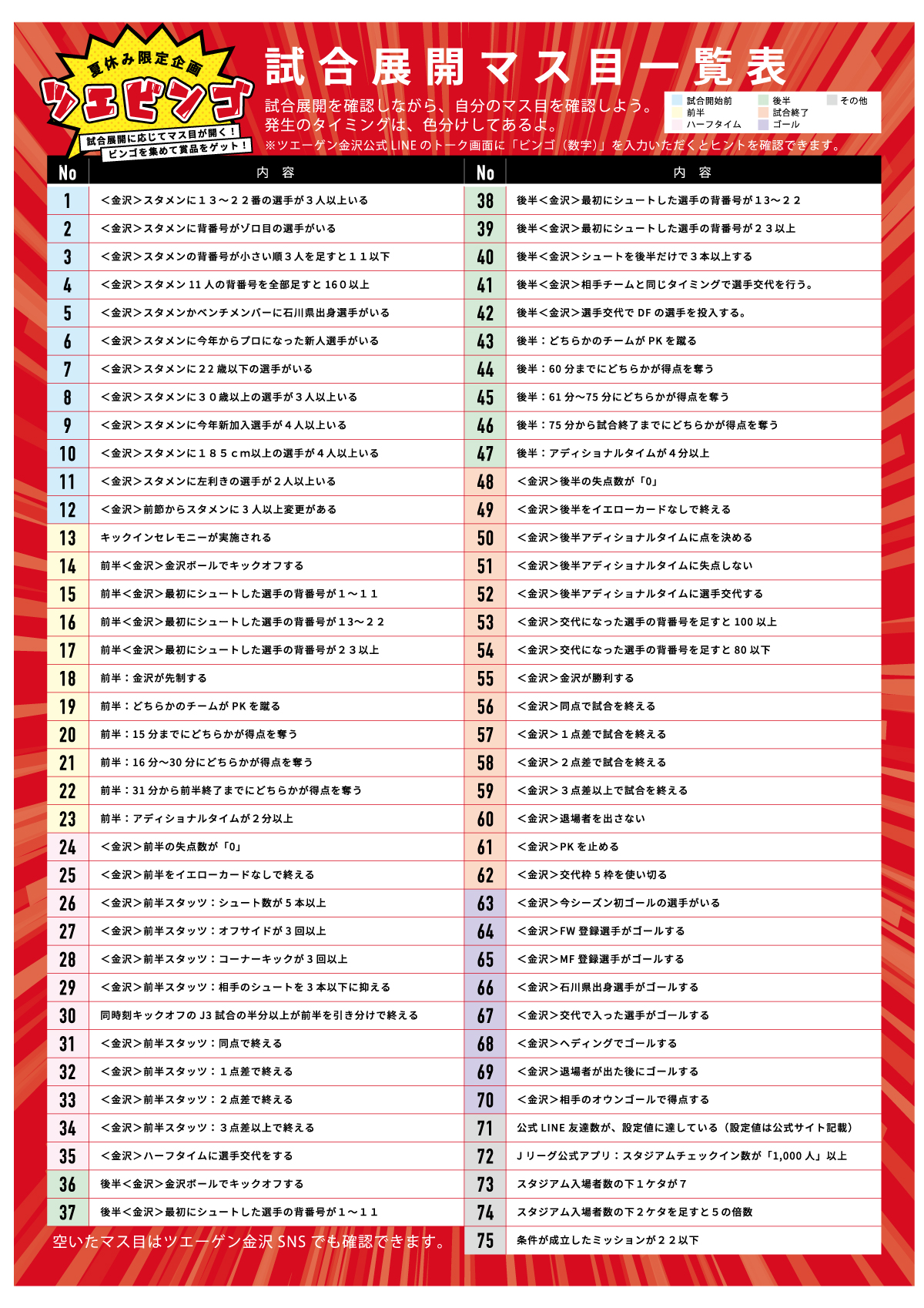 【8/30(土)鳥取戦】ツエビンゴ!ミッション達成状況の確認はこちら