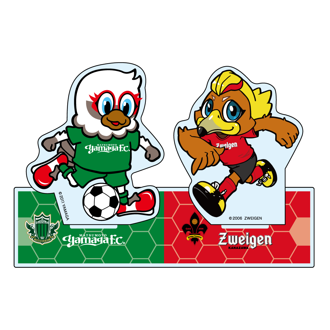 対戦相手の松本山雅FCのマスコット「ガンズくん」と「ゲンゾー」がコラボ!存在感抜群なサイズのアクリルスタンドを販売いたします。