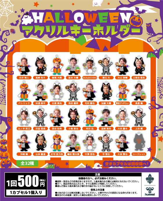 選手たちが一足お先にハロウィンコスチュームに変身しました。現所属31選手のデザインに加え、シークレット1種入りの全32種にて販売いたします。