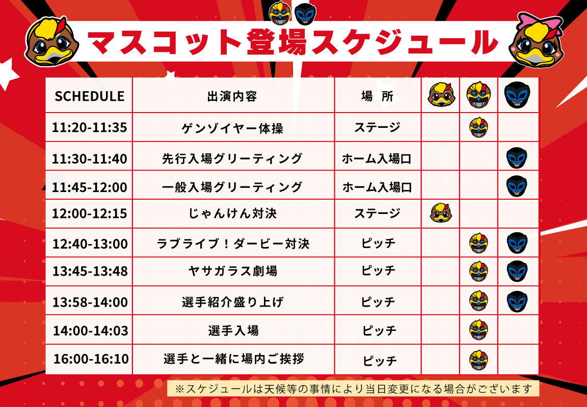 10月12日(日)アスルクラロ沼津戦のマスコットスケジュールをお知らせいたします。