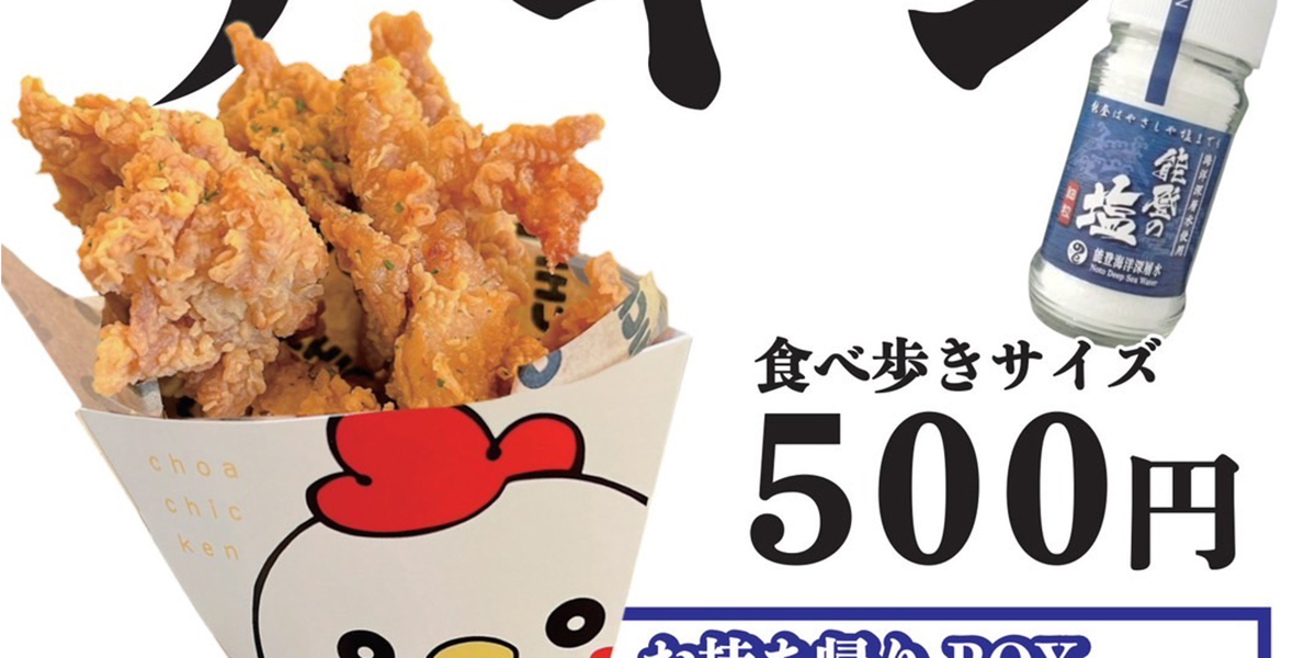 チョアチキンはカリカリサクサクの冷めても美味しいフライドチキンです!チーズボール、能登塩を使用したフライドポテトも大人気!