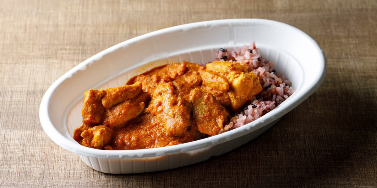 HUM&Go#人気No. 1メニューのバターチキンカレー。トマトベースのルウに、一晩じっくりとスパイスに漬け込んだホロホロの鶏肉が絶品です。