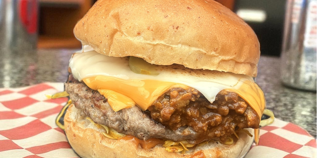 ひき肉たっぷりのキーマカレーとチーズがパティに絡み合った逸品をお召し上がりください!