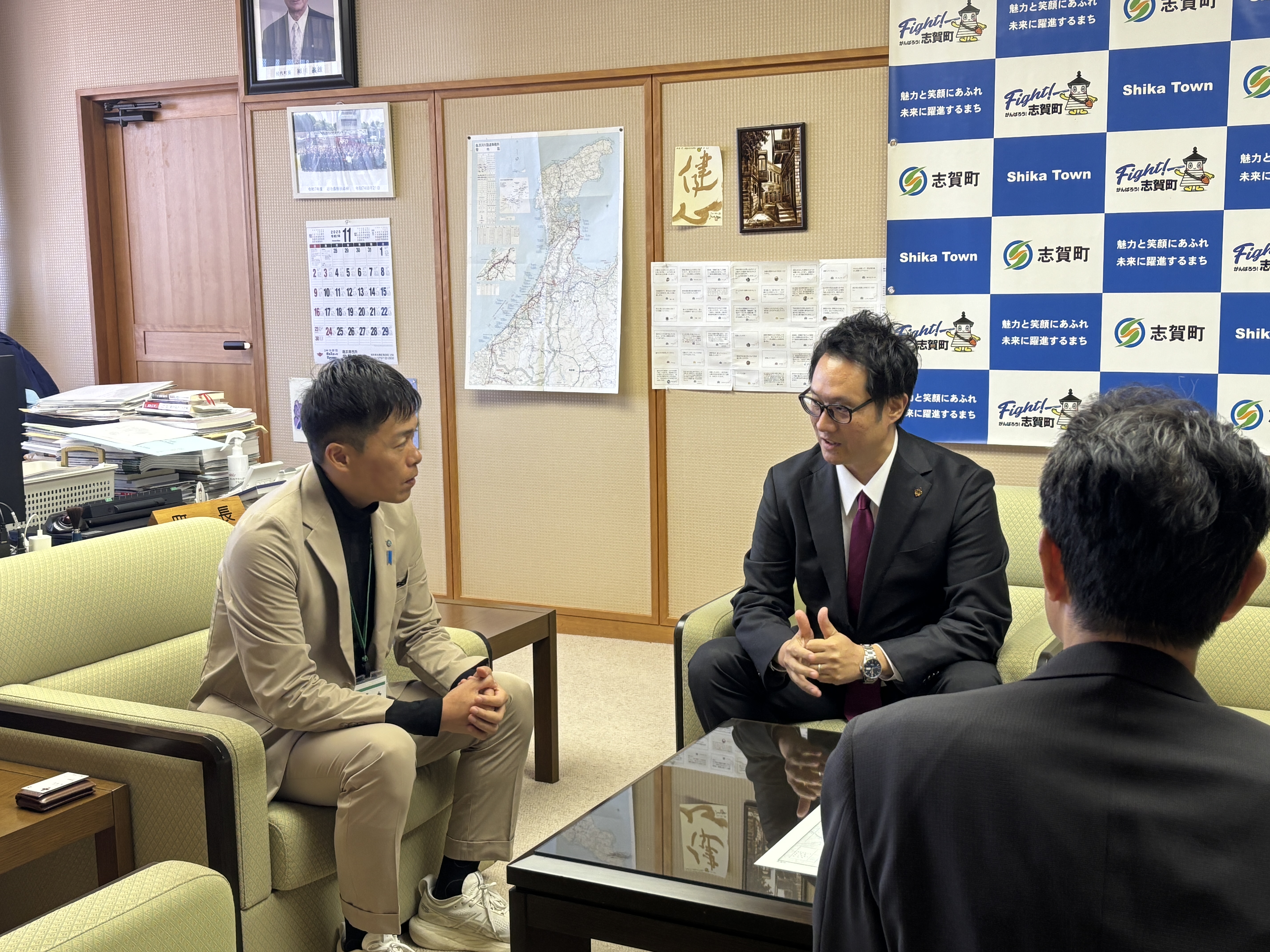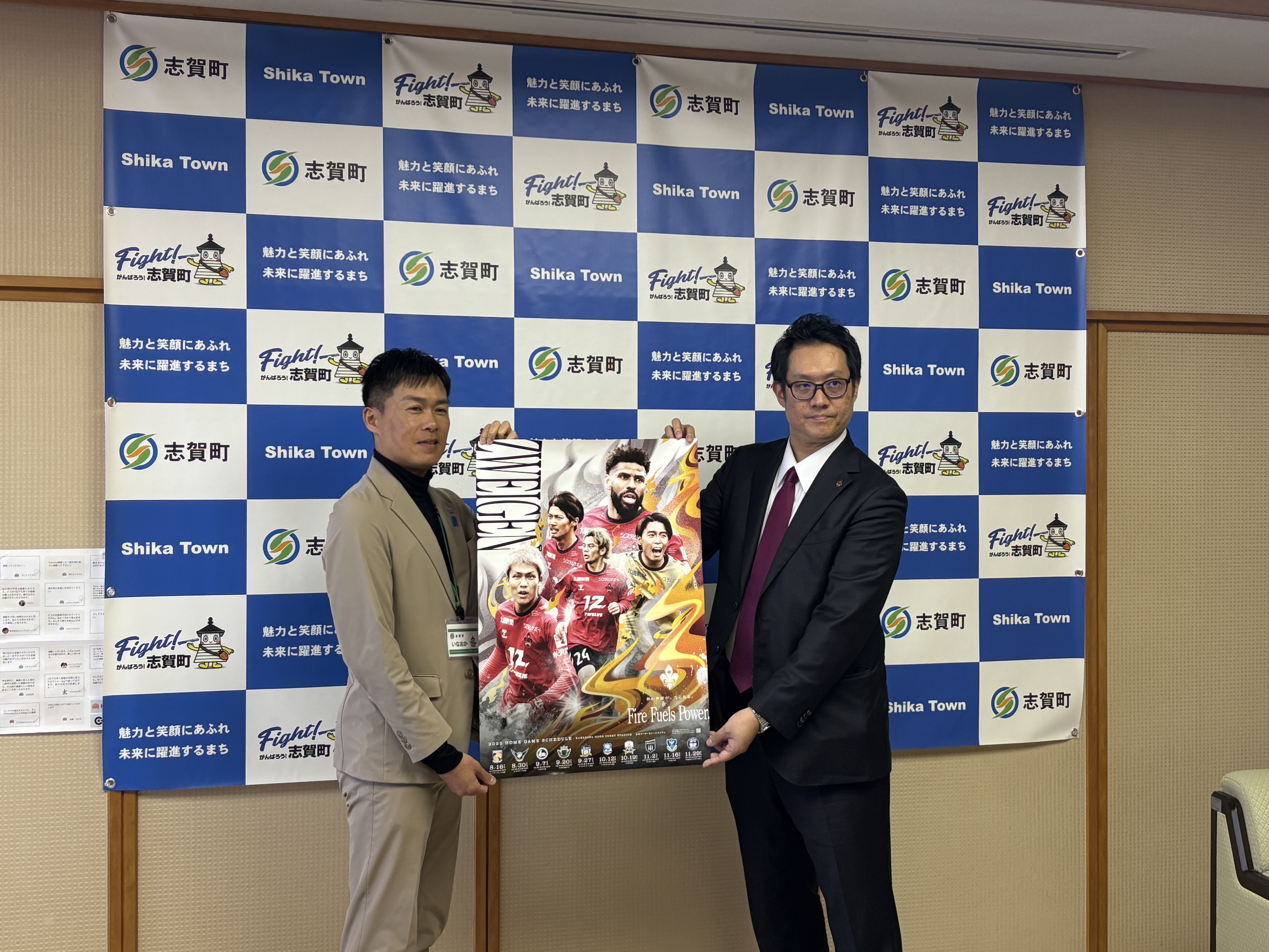 11月16日(日)栃木SC戦にて開催する「志賀町ホームタウンサンクスデー」に先立ちまして、11月4日(火)に株式会社石川ツエーゲン 代表取締役事業統括 端 陽造が志賀町役場を表敬訪問いたしました。