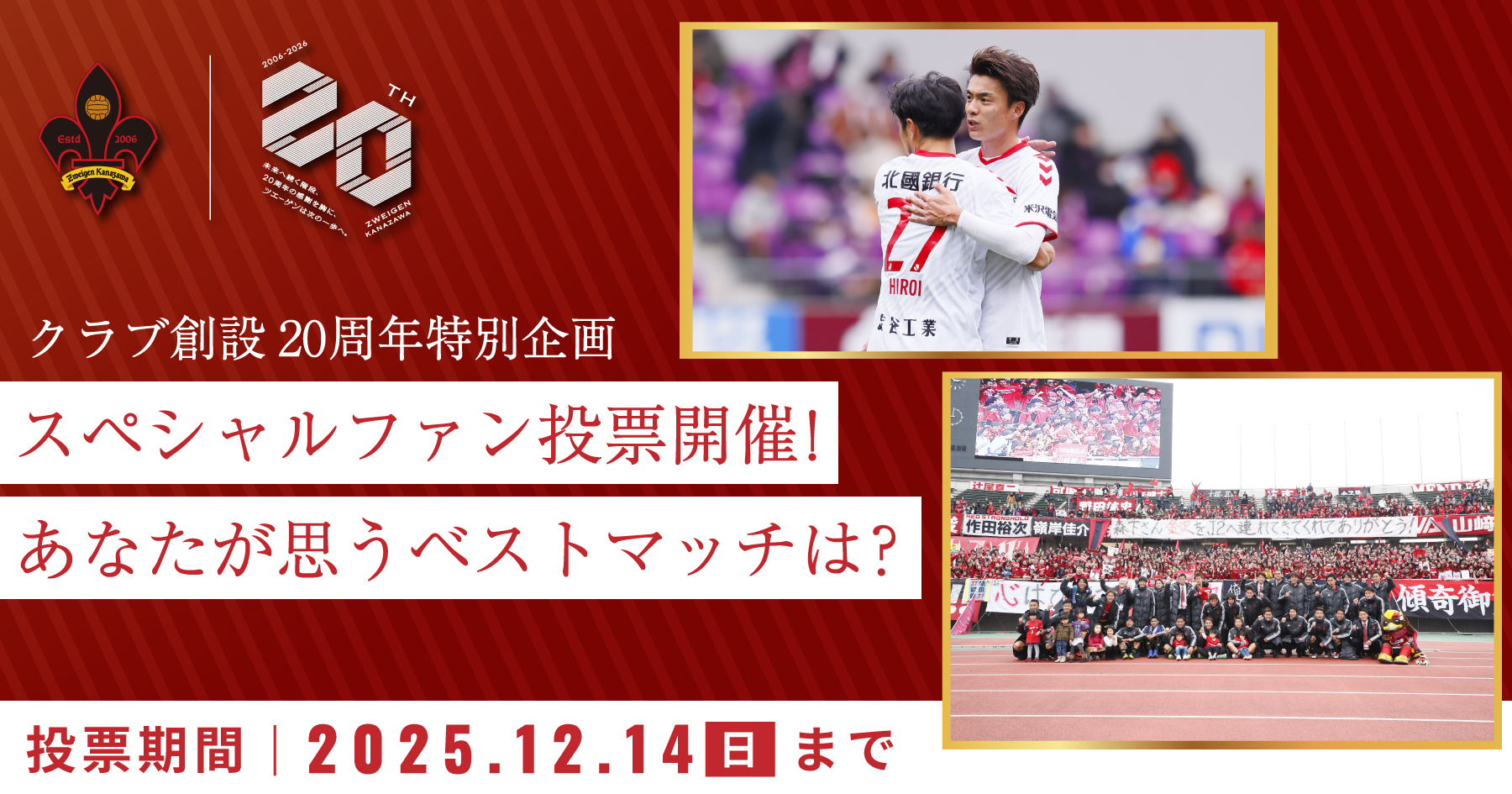 【ツエーゲン金沢ベストマッチ】クラブ創設20周年記念ファン投票企画実施のお知らせ