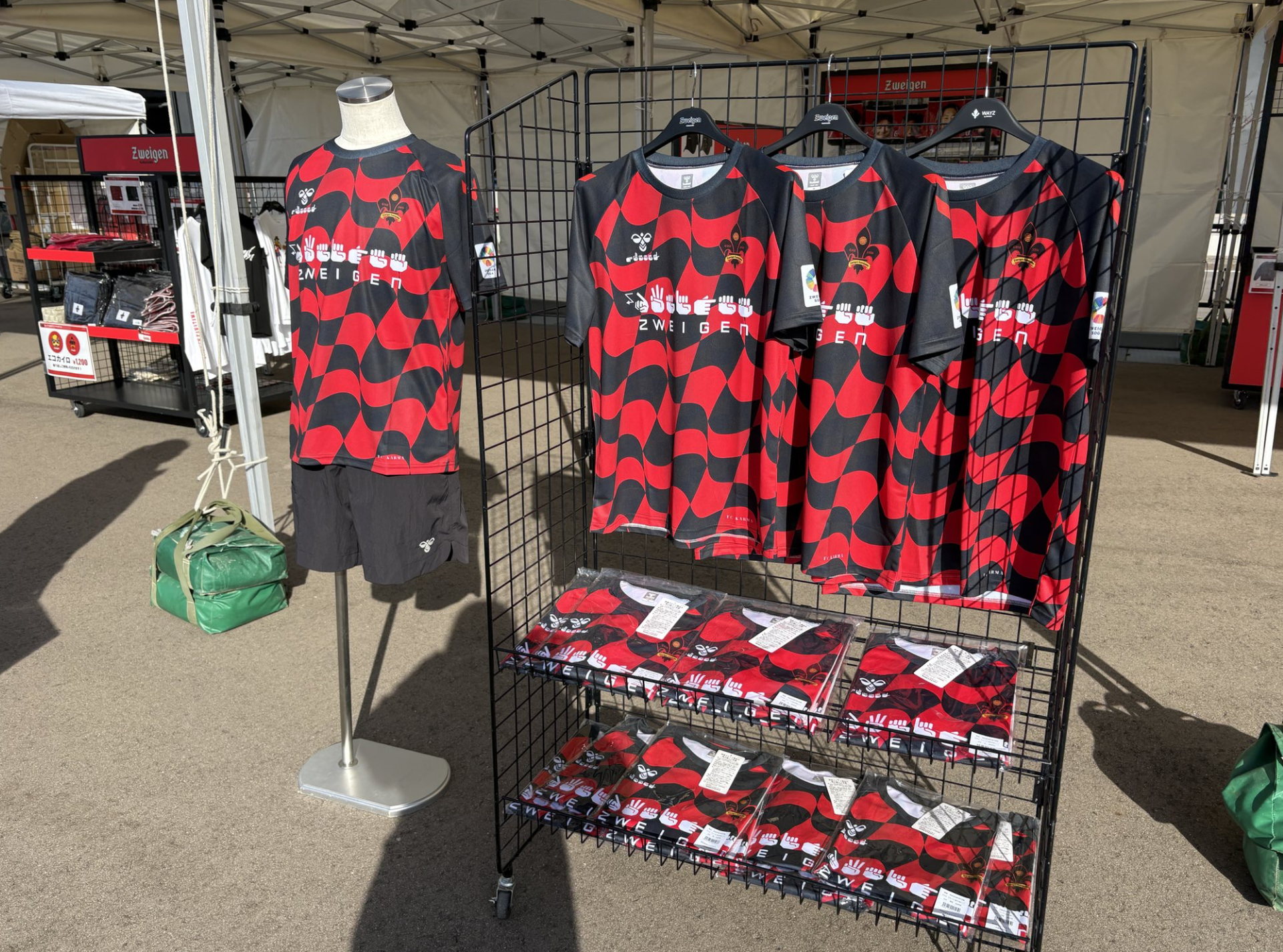 今回、選手たちが着用したシャツは、フラッグを重ね合わせたデザインに手話のイラストを配置したチャリティーTシャツ。「心の旗を振ろう」をテーマに、表面にZWEIGENを指文字とアルファベットで表記。背面上部には、「挑戦を、この街の伝統に。」のクラブ理念ロゴを入れ、「挑戦」と「伝統」をそれに対応する手話として入れています。