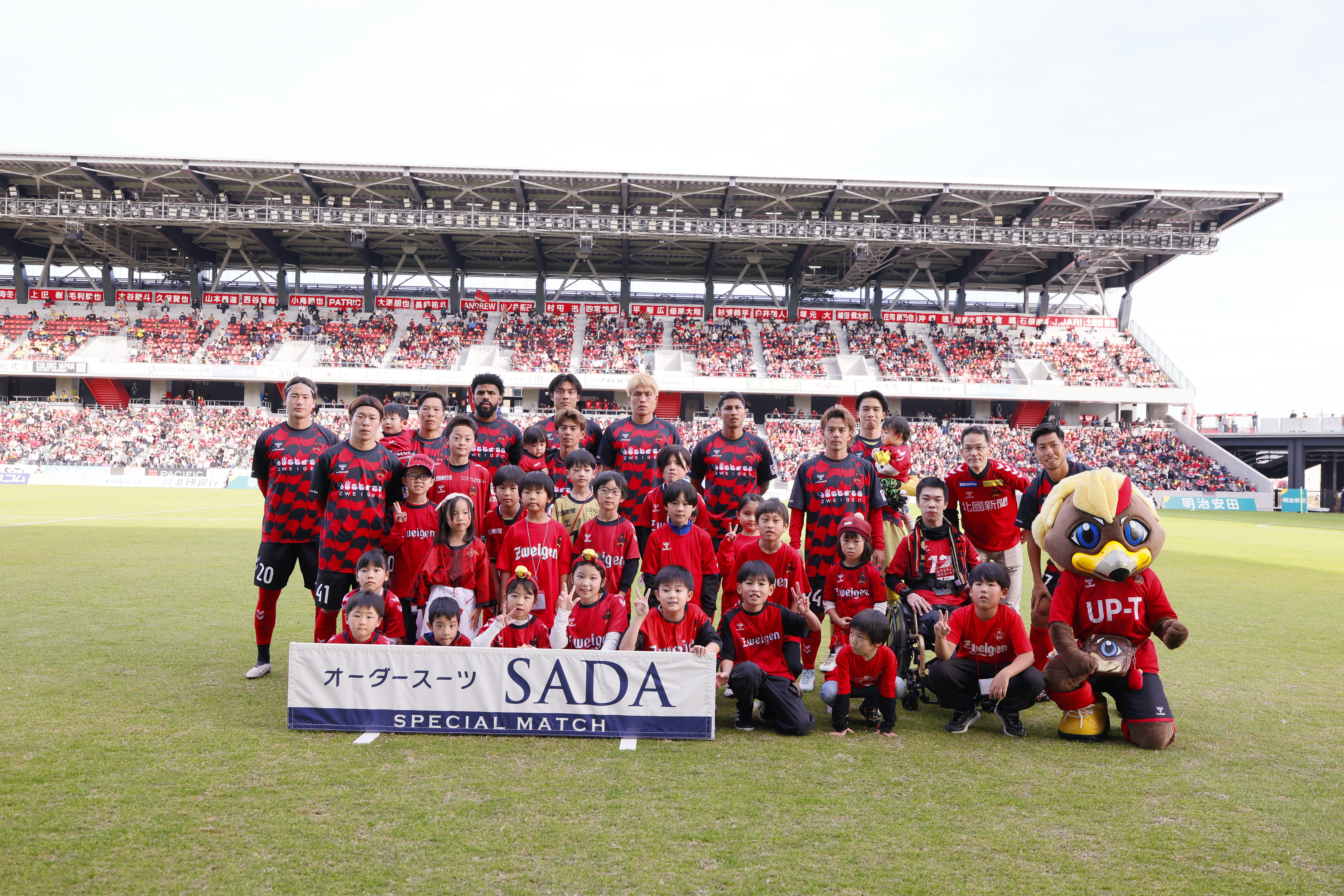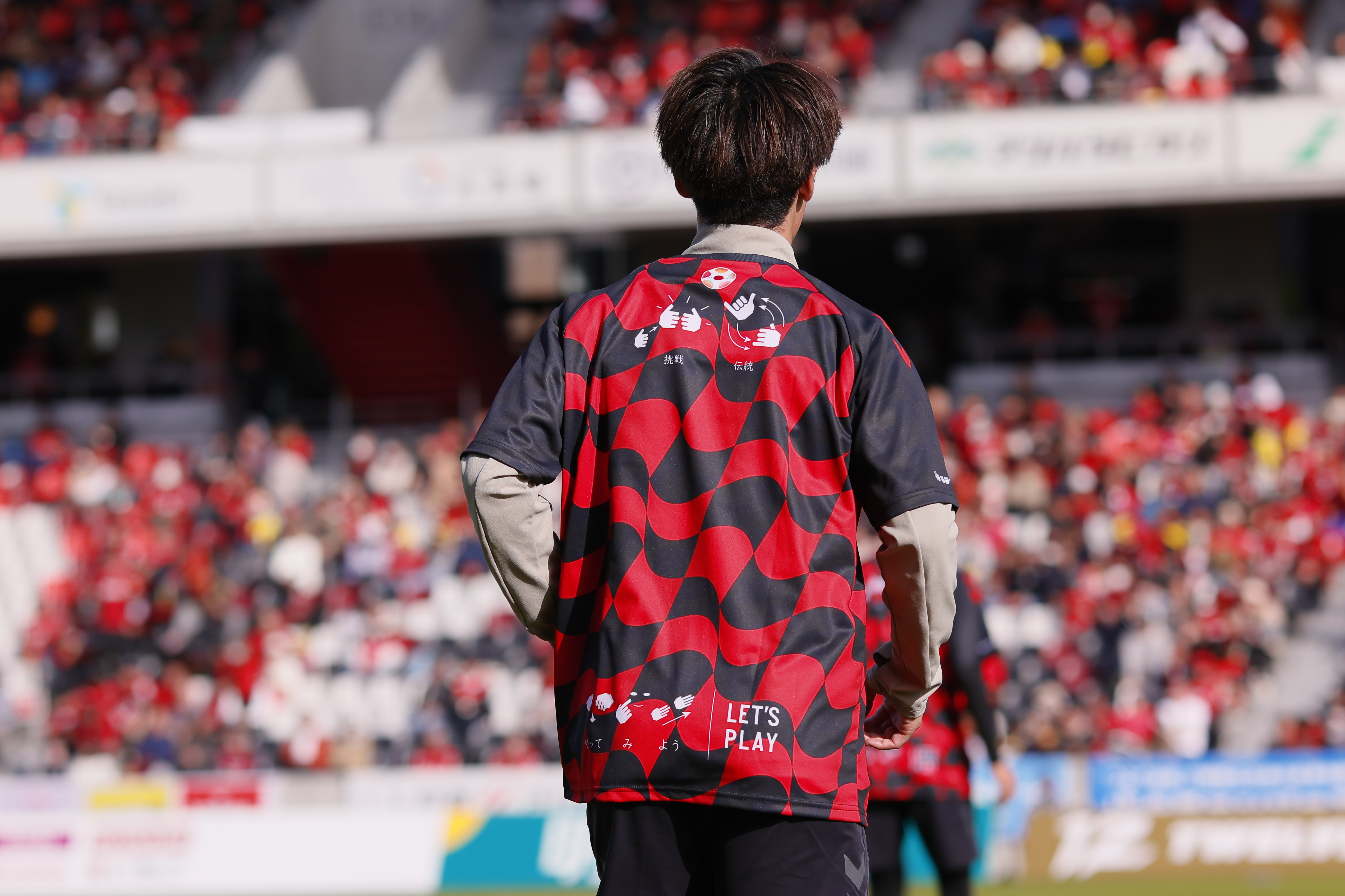 この試合当日は、登録メンバー20選手がウォーミングアップ時に着用し、さらにスタメン11選手は入場時にも着用。試合に訪れた来場者などに広くPRしました。