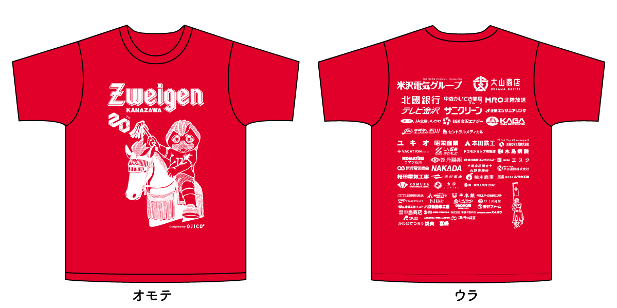 石川県発のTシャツブランド「OJICO(オジコ)」は、親子おそろいで楽しめるデザインが魅力的なTシャツブランドです。ツエーゲン金沢とOJICOがコラボするのは今年で8度目に。今回のTシャツデザインは、ツエーゲン金沢のマスコット「ゲンゾー」が、今年の干支である「馬」に跨り、石川県金沢市で開催される「金沢百万石まつり」の最大の見どころである豪華絢爛な時代パレードによく見られる、加賀藩祖・前田利家公の金沢城入城を再現したデザインに。
