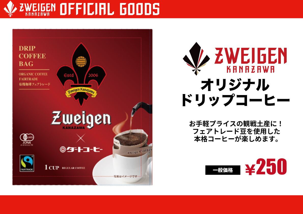 ツエーゲン金沢オリジナルドリップコーヒー「ダートコーヒー」さまとのコラボ商品!お手頃価格なので、対戦記念のお土産にもぴったりです!